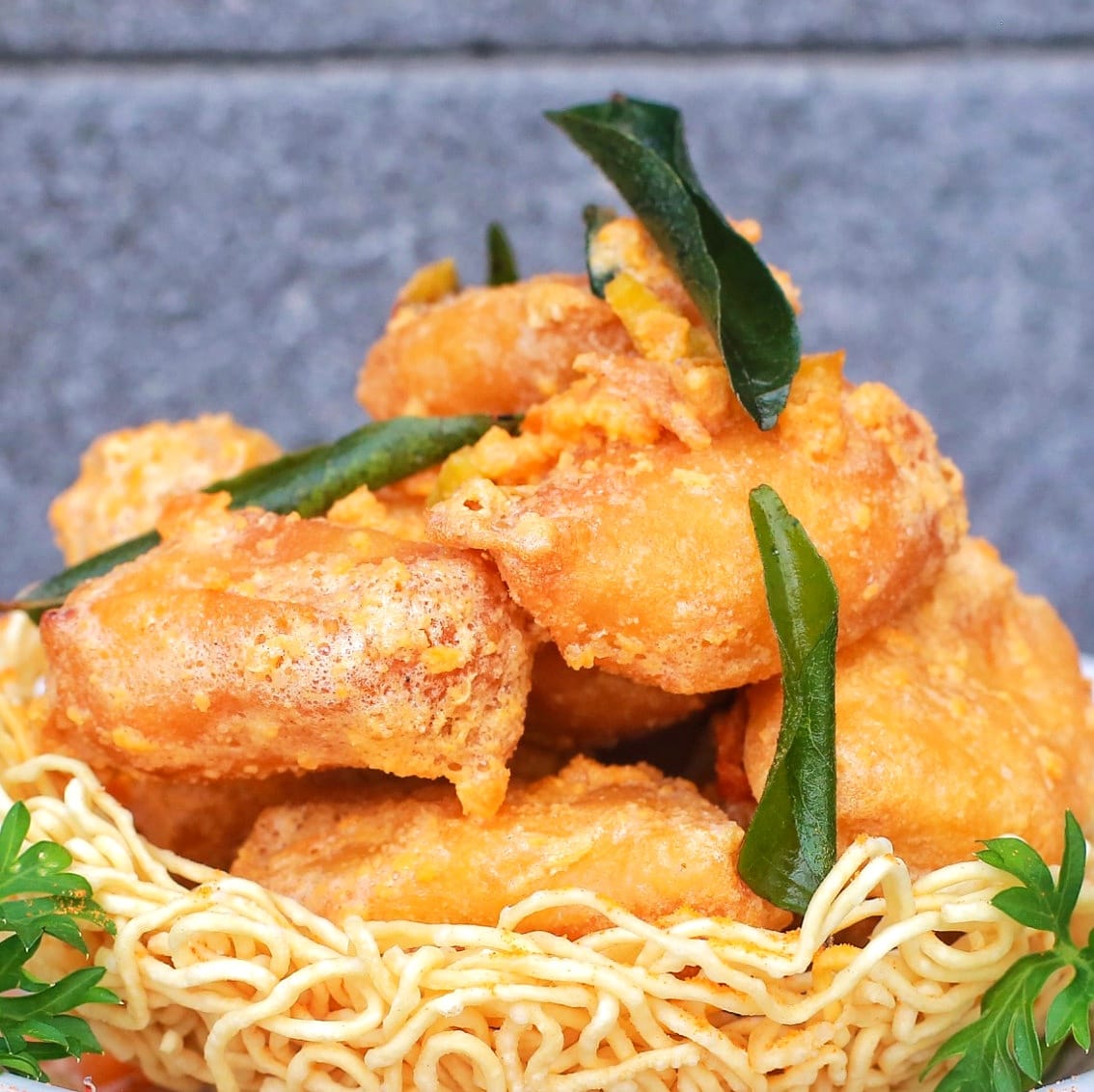 Tofu Bounded with Salted Egg Sauce. (Sharing Menu)