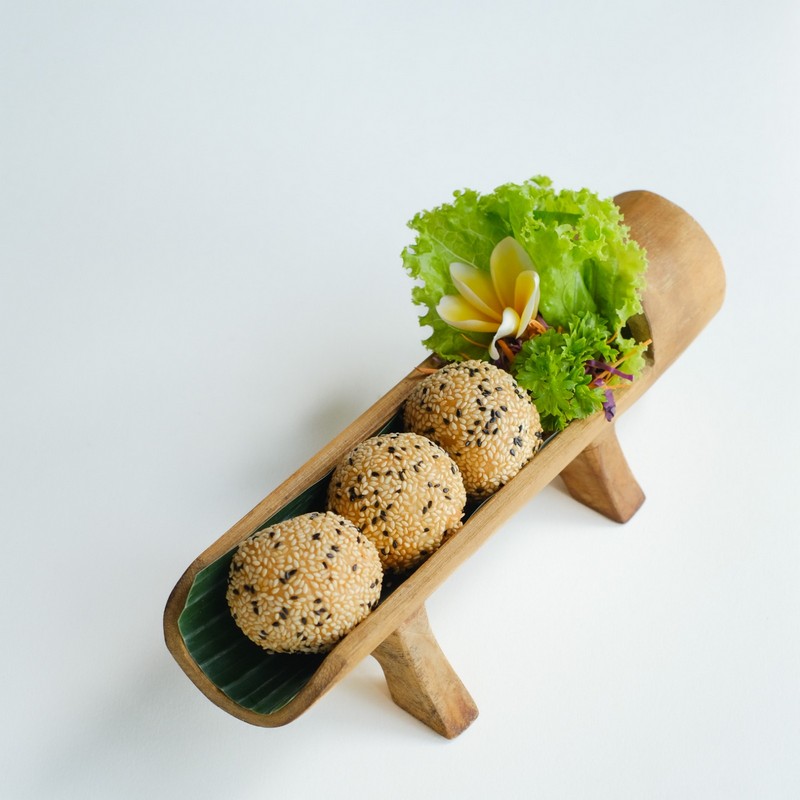 Onde-Onde Perengan Sticky rice flour wrapped in Sesame seed and filled with Kumara /Purple sweet potato and Mascarpone cheese Rp 68.000 Available - +